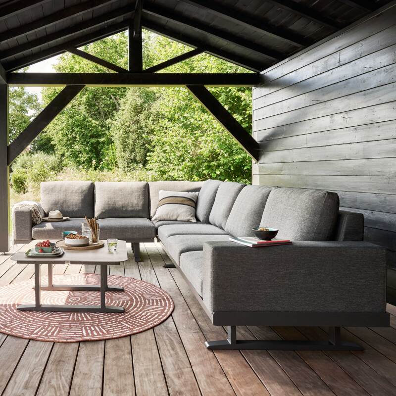 Transforma tu jardín o terraza en un espacio de vida cómodo y estético con Conjunto de muebles de jardín esquineros de aluminio de 5 plazas. De líneas modernas y materiales cuidadosamente seleccionado
